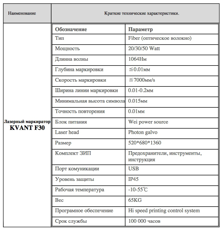 ЛАЗЕРНЫЙ МАРКИРАТОР KVANT F30